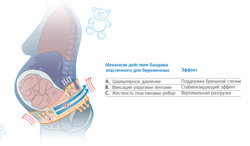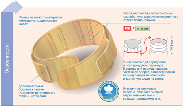 Поддерживает живот в период беременности и в ранний послеродовый период.