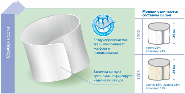 Разгружает область послеоперационной раны, что способствует стабильности формирующегося послеоперационного рубца.