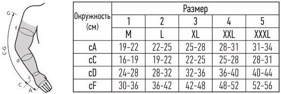 Рукав медицинский эластичный компрессионный, с плечом, с полуперчаткой предназначен для профилактики и лечения лимфовенозной недостаточности верхней конечности.