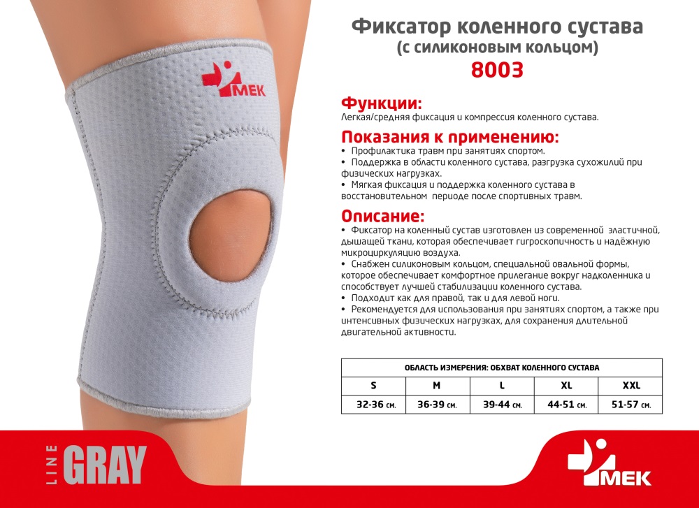 8003 Фиксатор коленного сустава (с силиконовым кольцом) серый МЕК