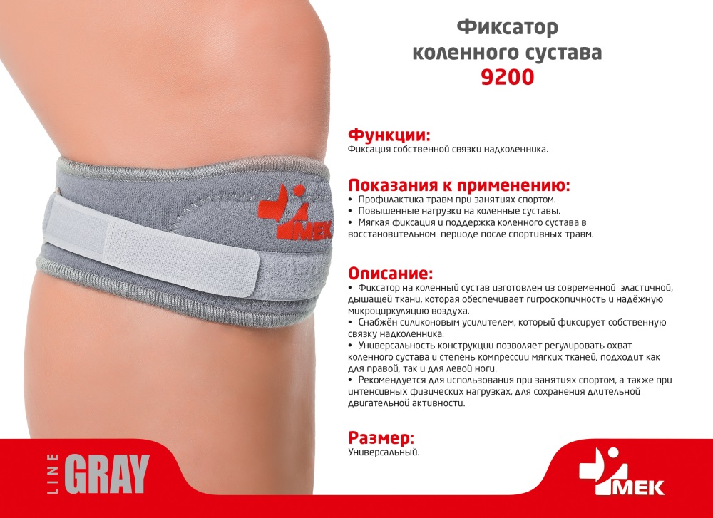 - Снабжен силиконовым усилителем, который фиксирует собственную связку надколенника.