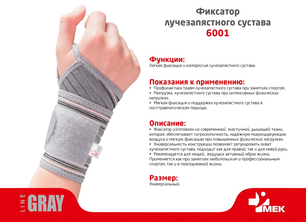 6001 Фиксатор лучезапястного сустава серый МЕК