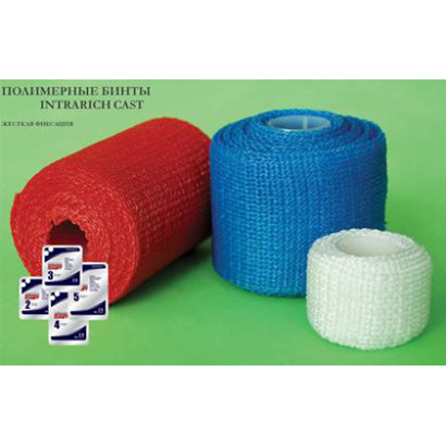 Синтетический полимерный бинт INTRARICH CAST предназначен для изготовления классических иммобилизирующих травматологических и ортопедических повязок, а также для изготовления жестких вставок для функциональных повязок. С помощью INTRARICH CAST возможно также изготовление специальных протезов и ортопедических устройств. Иммобилизирующие повязки, изготовленные из бинтов INTRARICH CAST, лёгкие, прочные, воздухопроницаемые и рентгеноконтрастные.