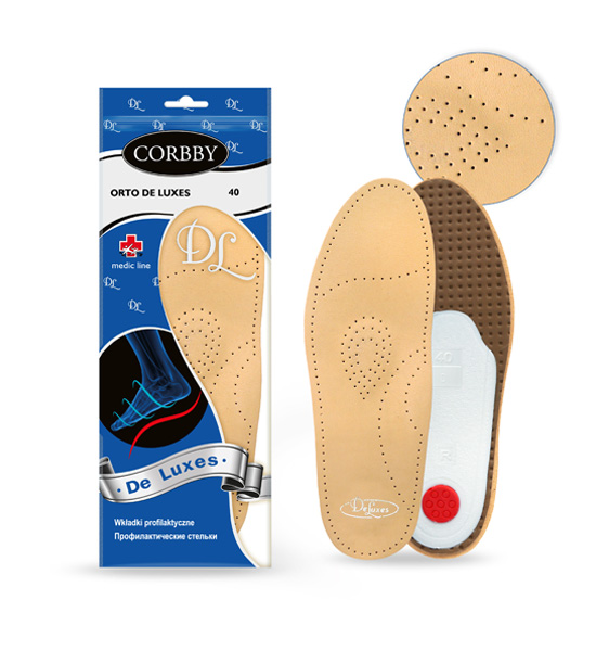 ORTO DE LUXES — лечебно-профилактические (ортопедические) стельки из натуральной полированной кожи при продольно-поперечном плоскостопии.