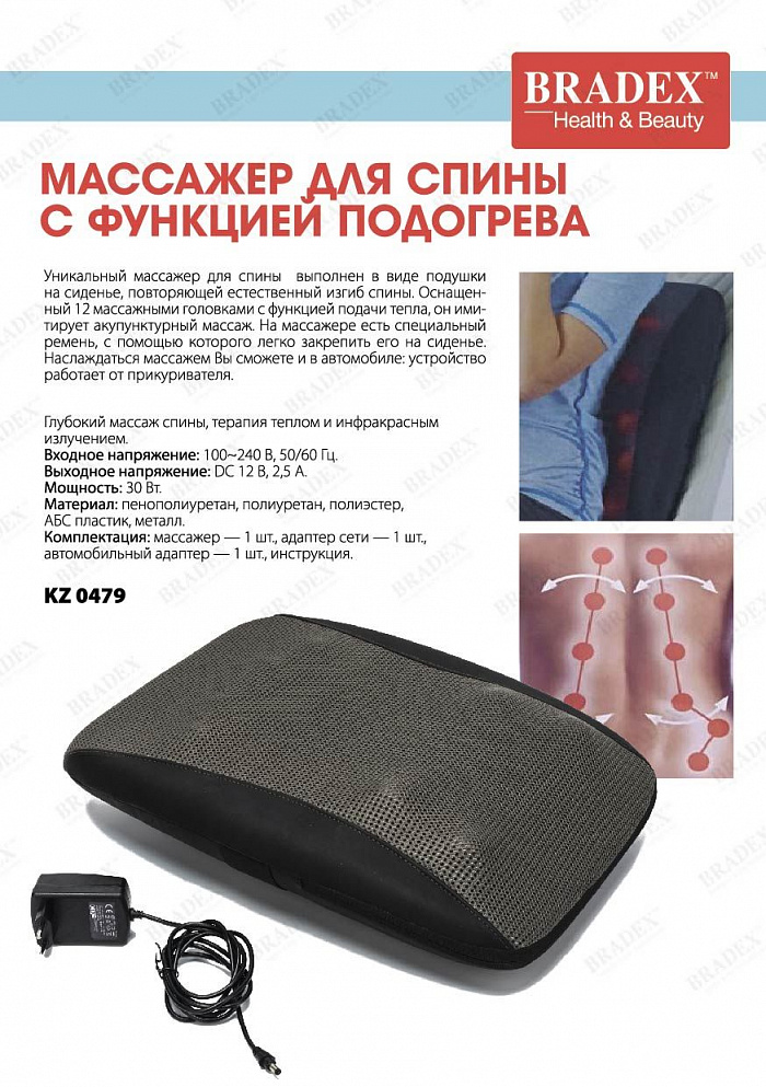 Комплектация: массажер — 1 шт., адаптер сети — 1 шт., автомобильный адаптер — 1 шт., инструкция.